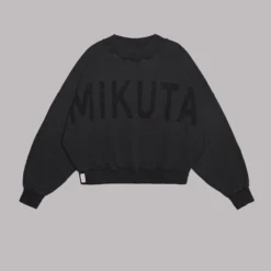 Large canvas bag detailed with a black and white print with an inside zipper pocket and signature black leather patch front logo.