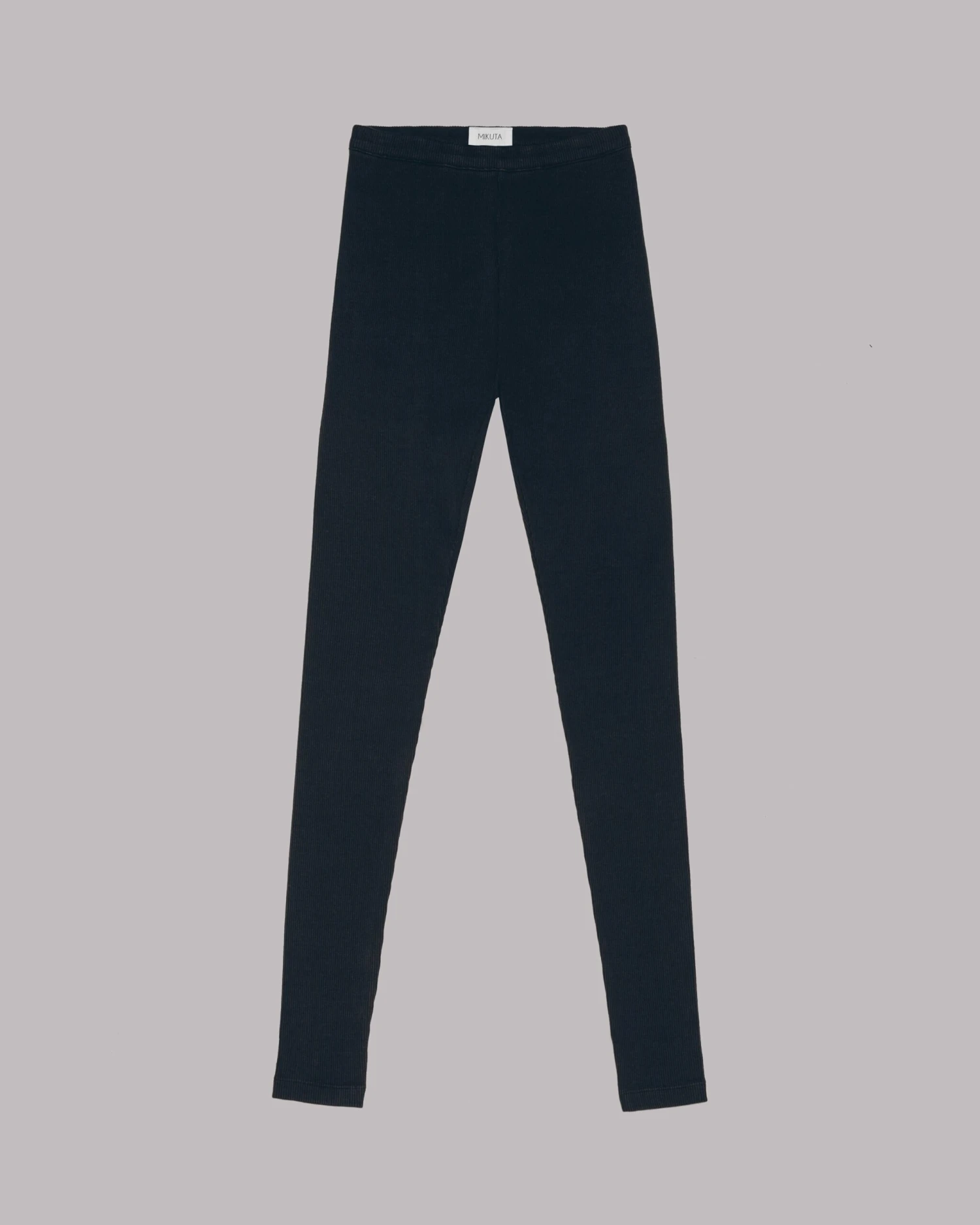 Long ribbed cotton leggings in black for comfy days at home or on the streets!