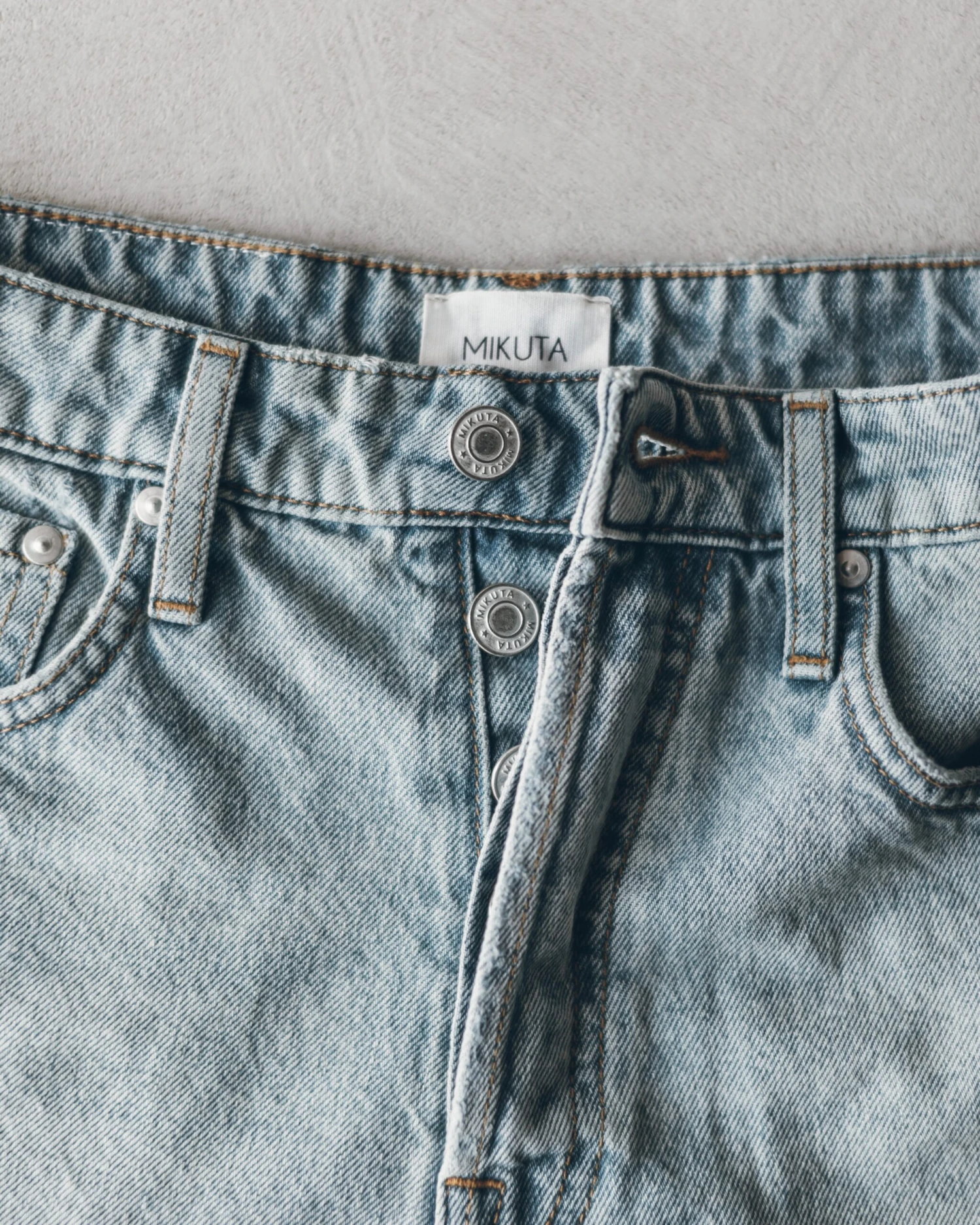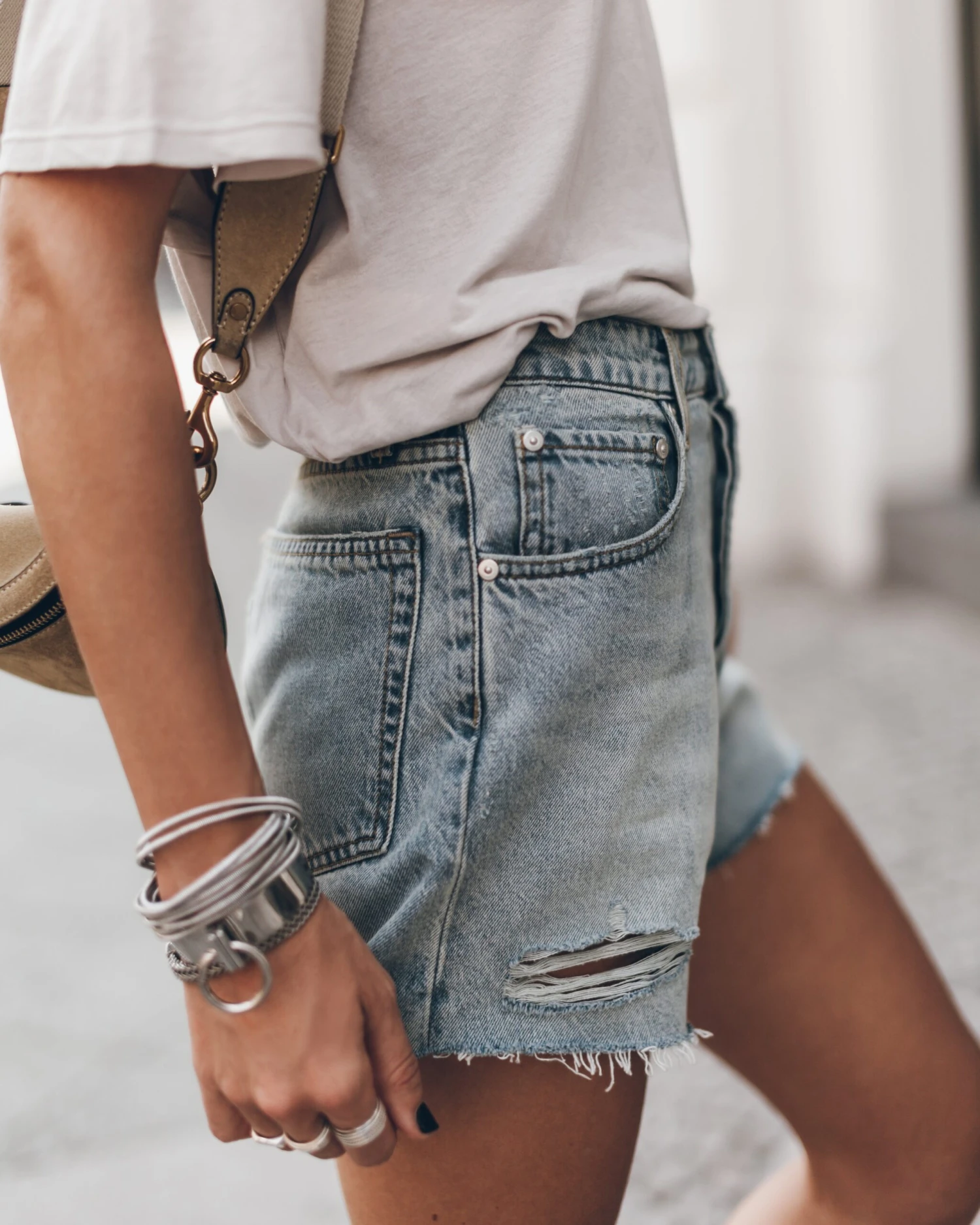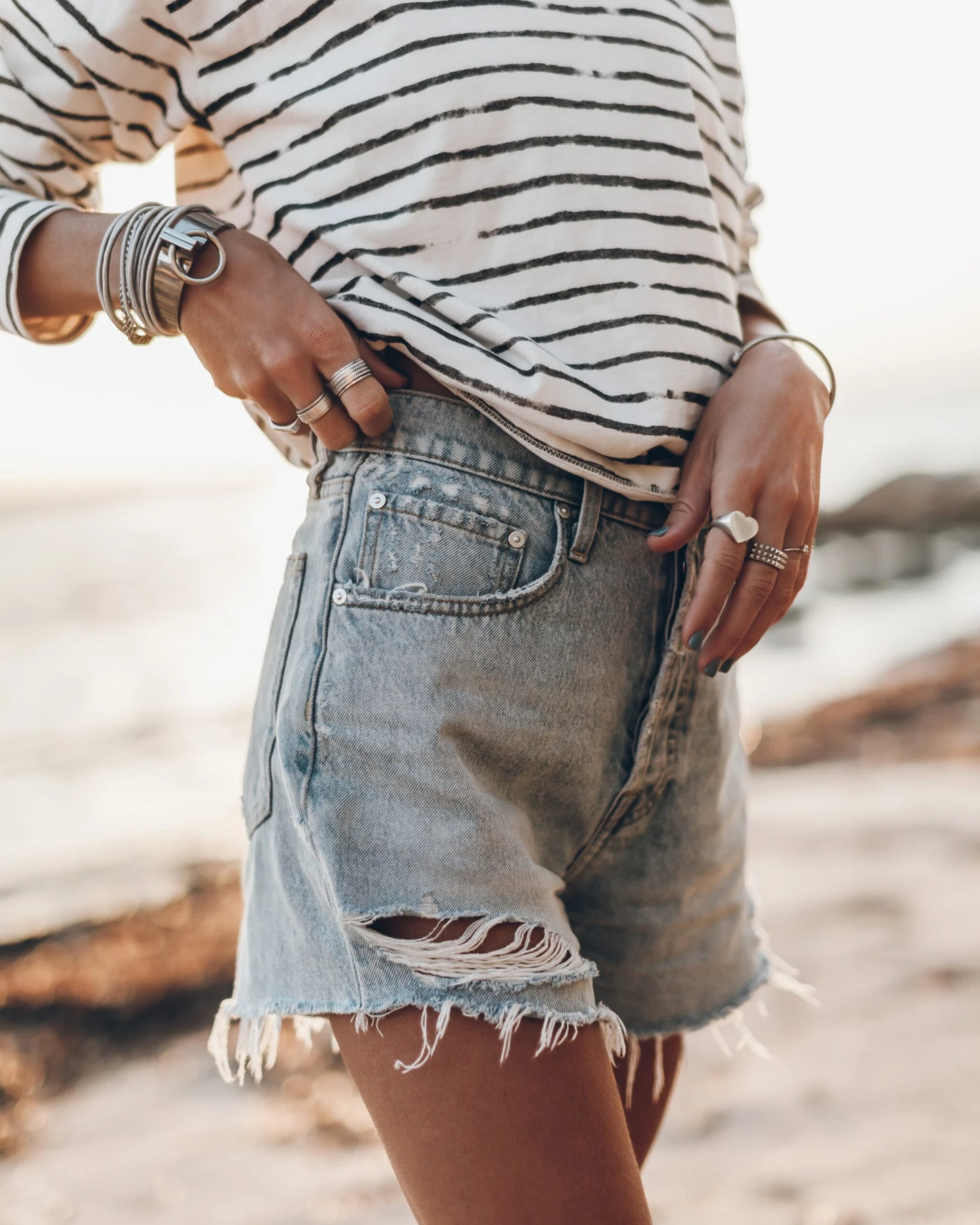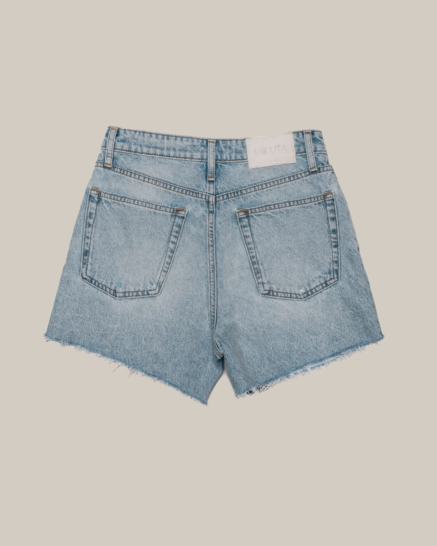 Non-stretchy, vintage inspired mid-rise denim shorts with summary closure.