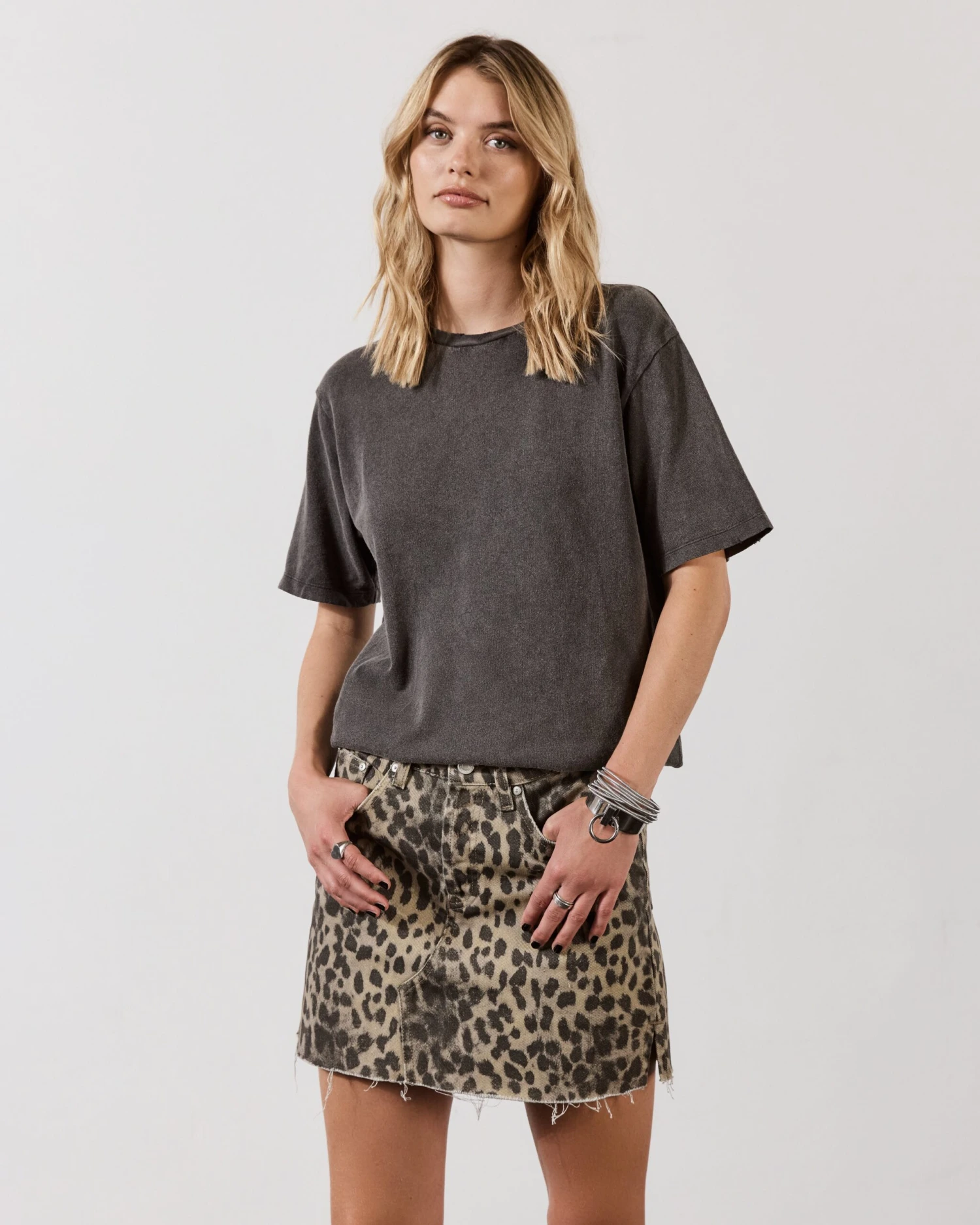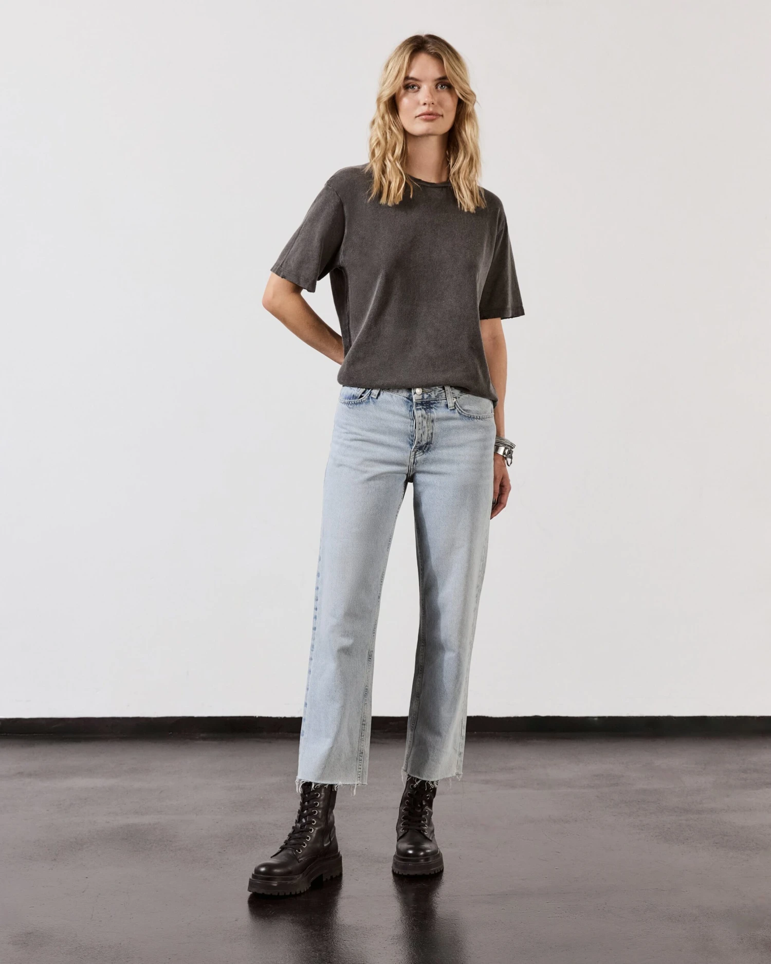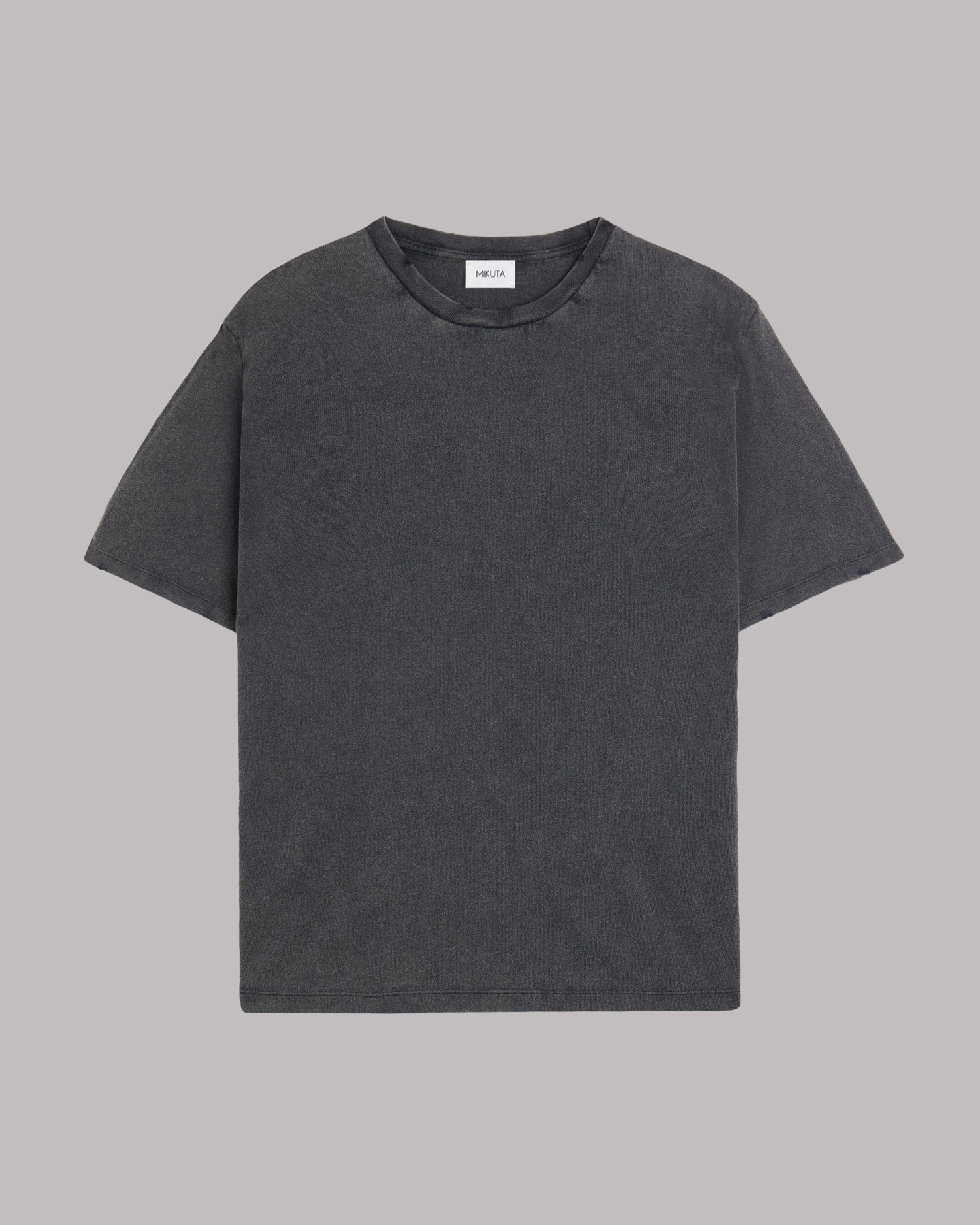 Vintage inspired cotton t-shirt in extra faded black. Comes with distressed collar and sleeves.