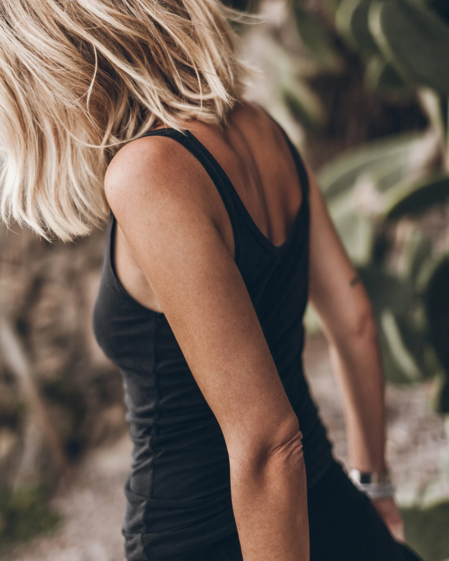 The one that stays in your rotation. The Dark Regular Tank Top goes with everything, and is a staple piece perfect for layering in cooler months and standing alone in the heat.