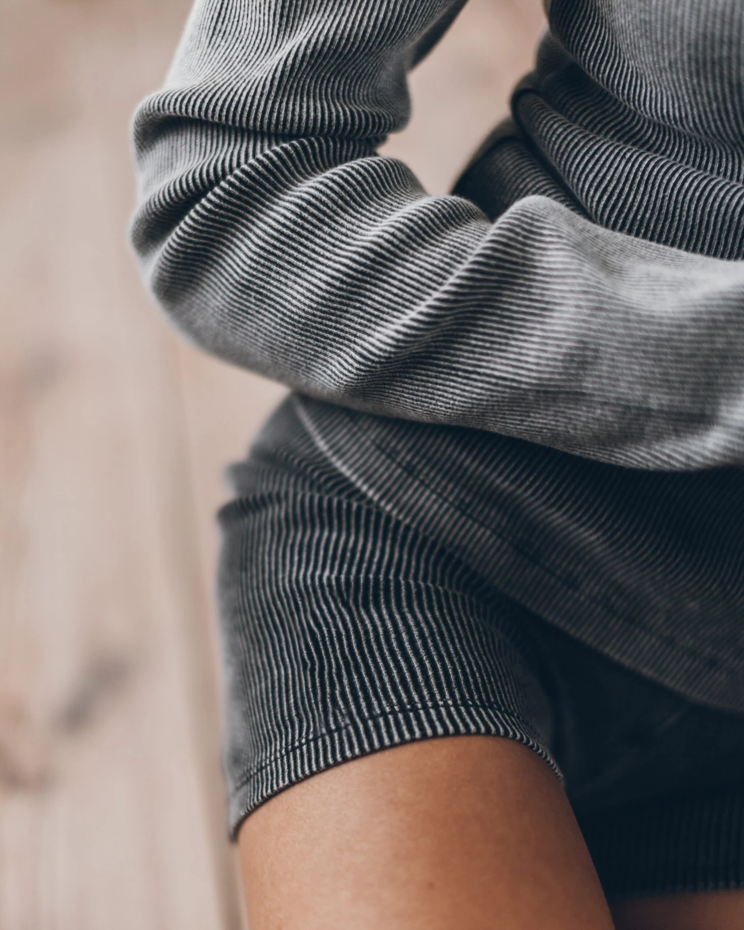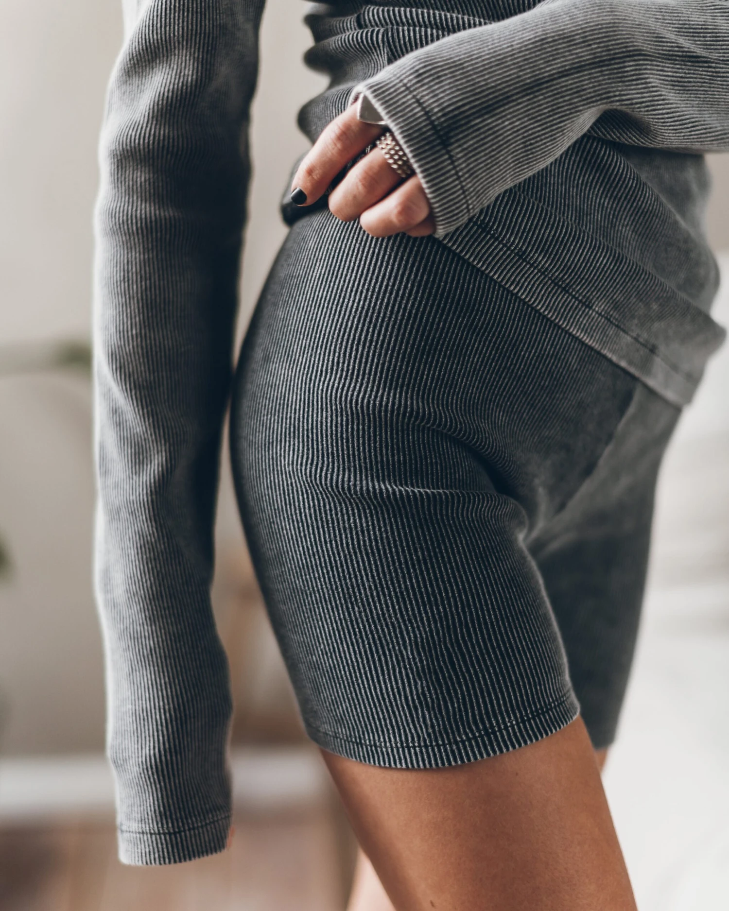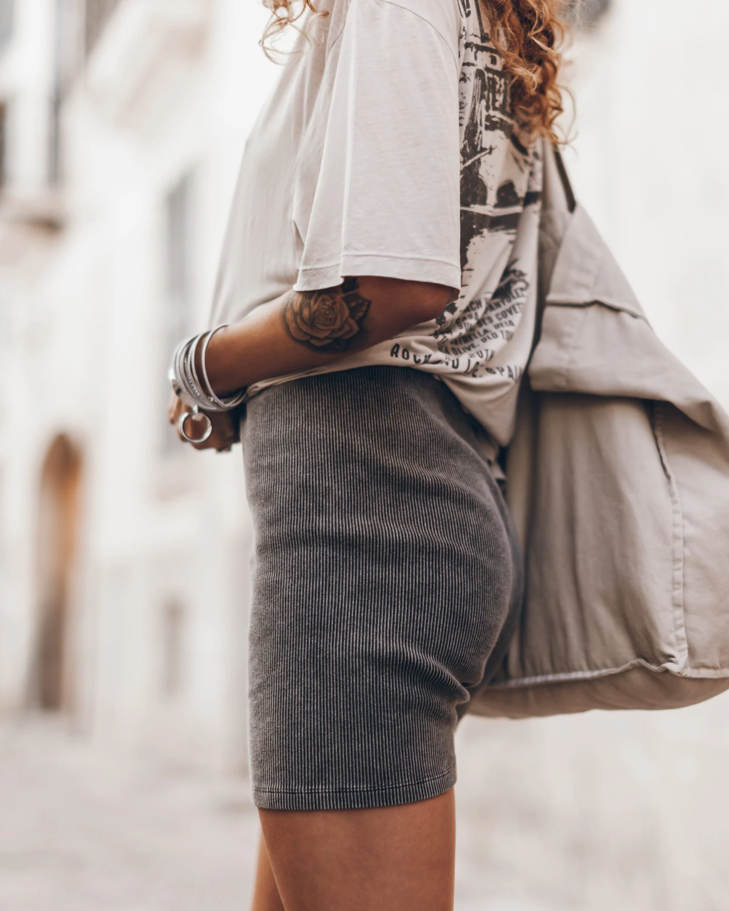 Dark grey ribbed biker shorts in cotton. Perfect for cozy days at home or on the streets!