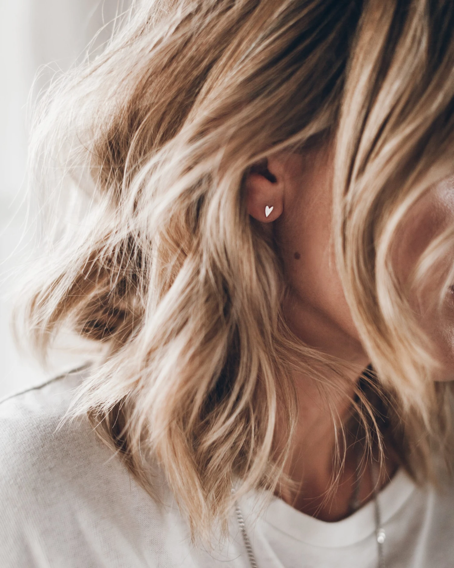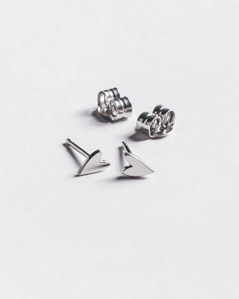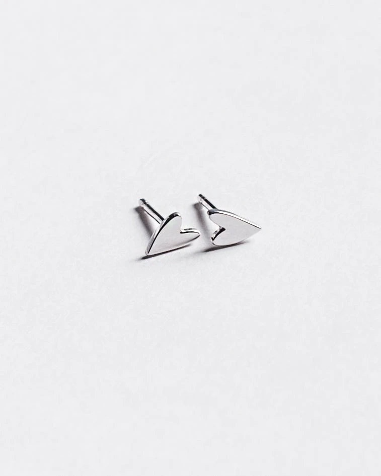 Heart stud earrings made of 925 sterling silver, small and discrete but full of love.