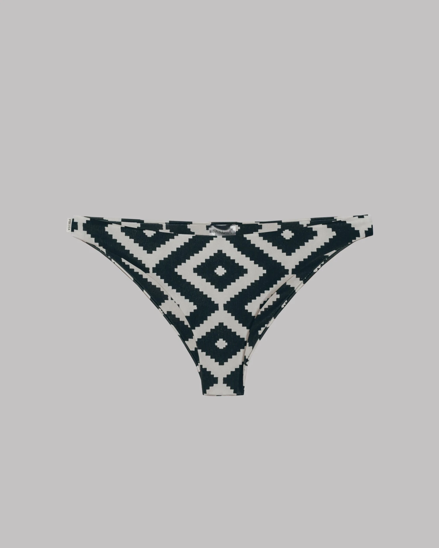 Faded black and light printed bikini bottom with low waist and cheeky back.