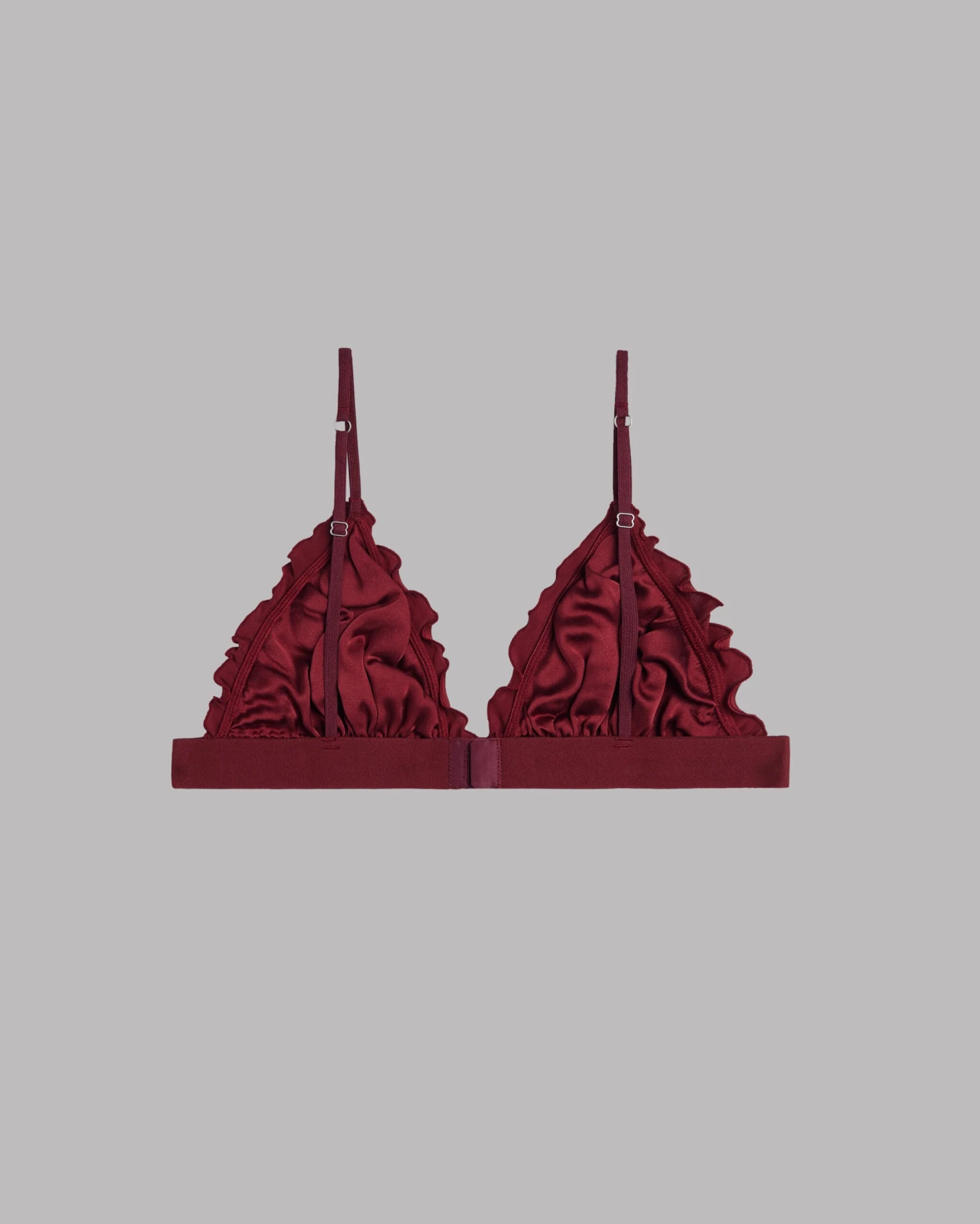 Red bralette in soft silk with adjustable straps and hook closure in the back.