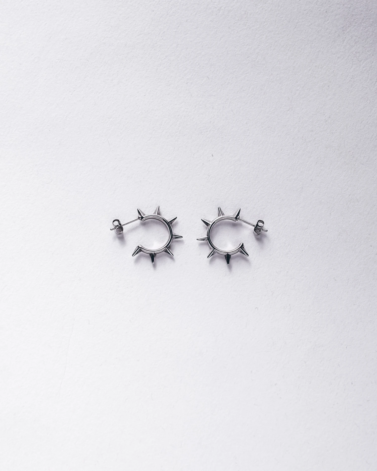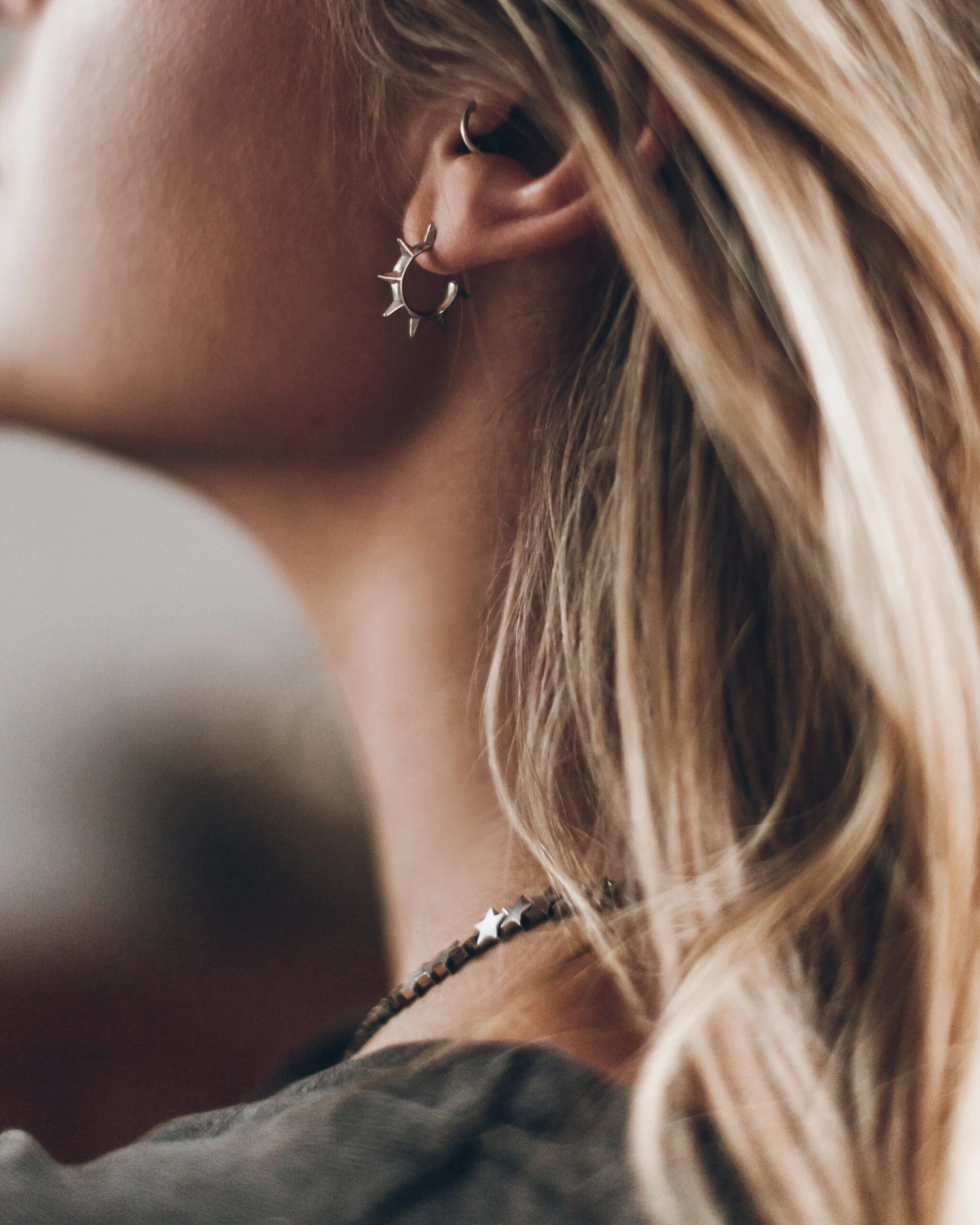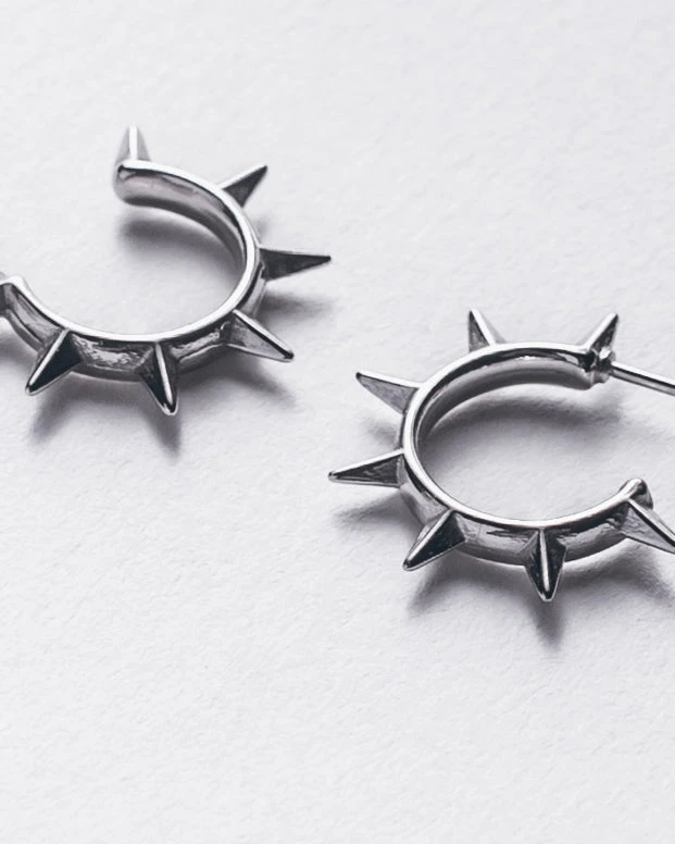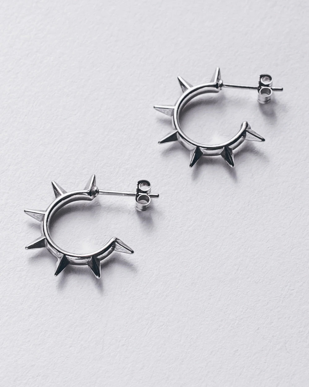 The Spikes are the first solid 925 sterling silver pieces we launched at MIKUTA, and therefore have a special place in our hearts. These small and versatile hoops have just the right amount of attitude.