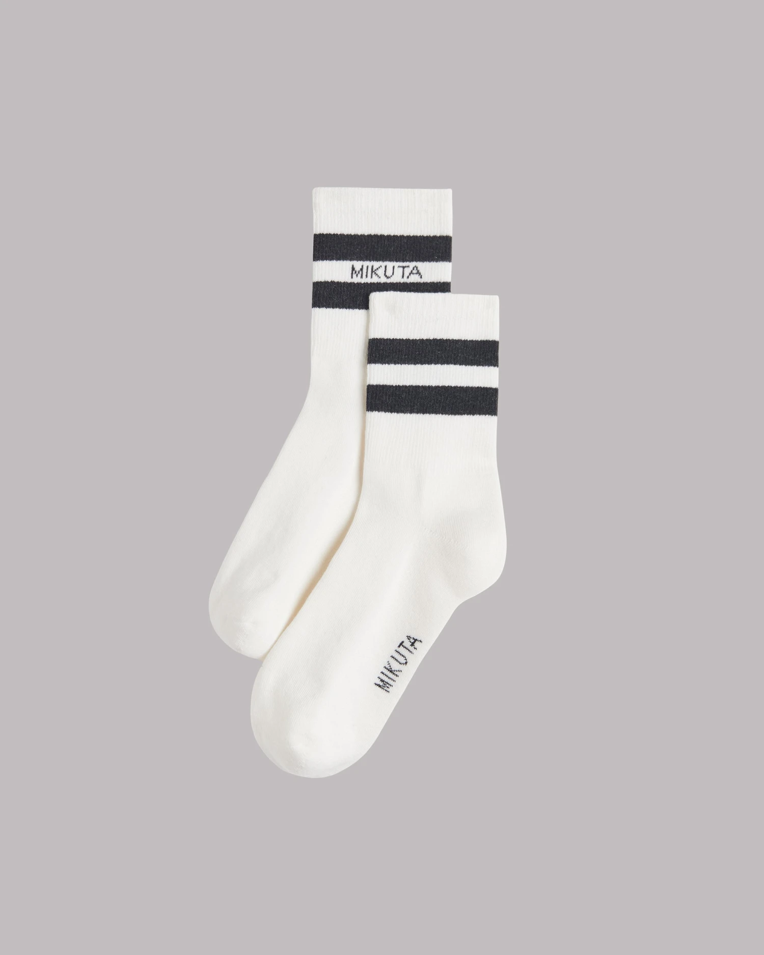 For the sporty one – MIKUTA branded unisex double stripe socks in a cotton blend with elastane.