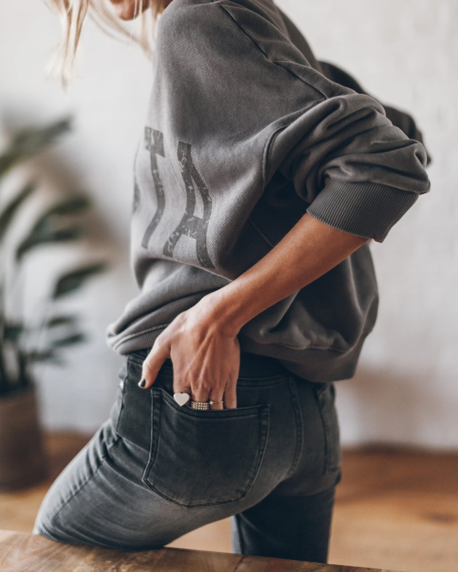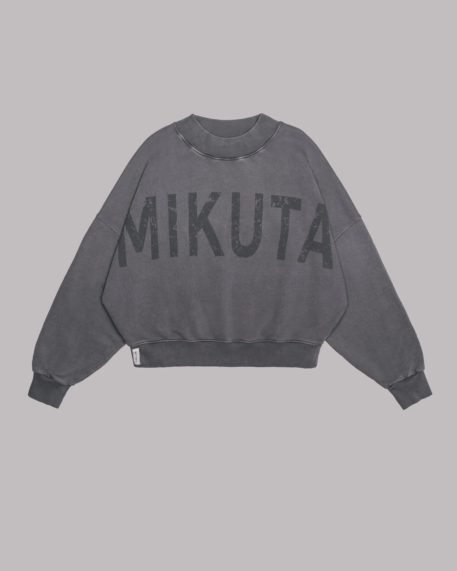 Oversized cotton sweater stone grey with the faded MIKUTA print.
