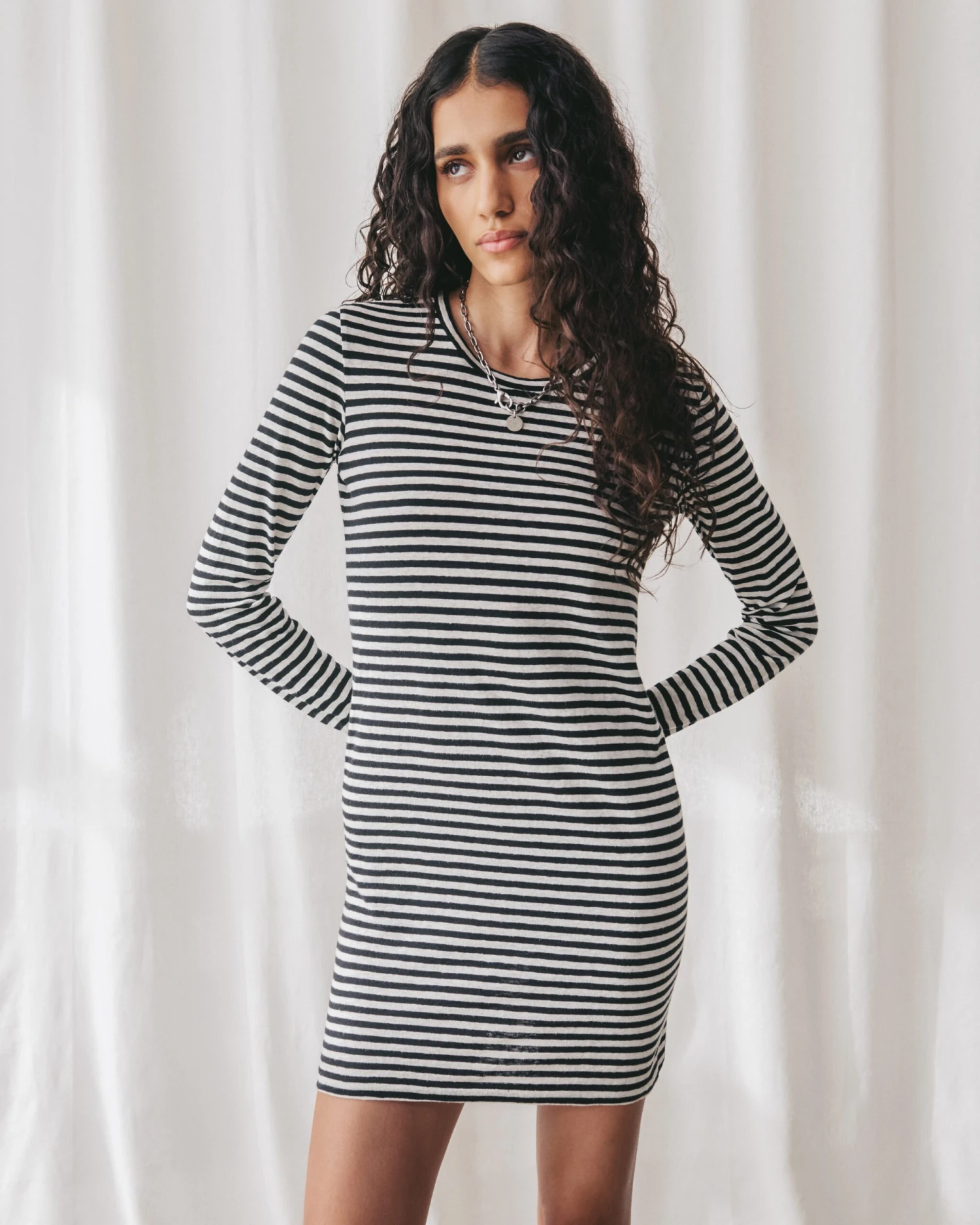 The Striped Short Linen Longsleeve Dress