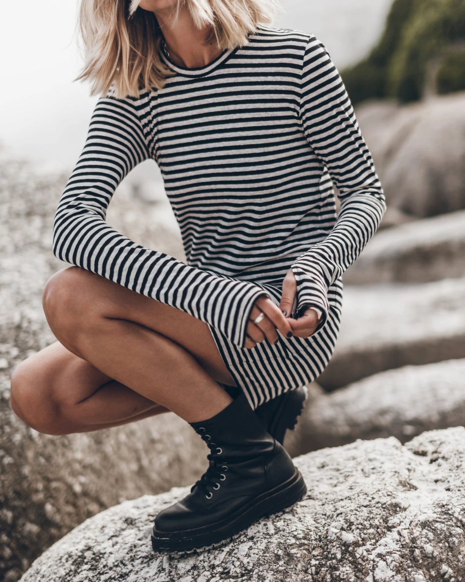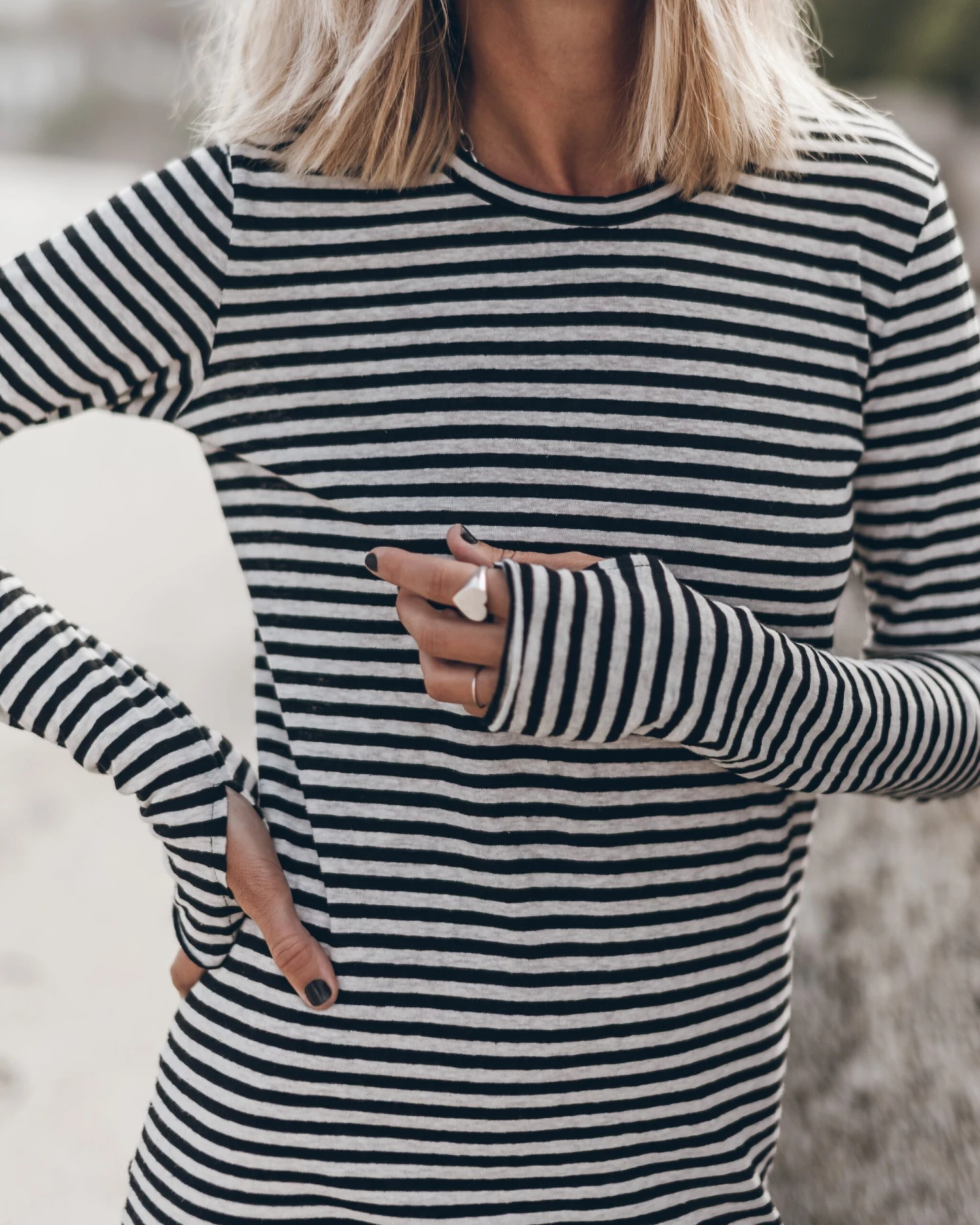 This carefree staple has the casual quality of a T-shirt and the simple flair of a mini dress. The linen-cotton blended material provides equal parts coverage and breathability, and the design features two thumbhole openings at the cuffs.