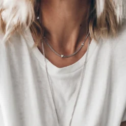 Chain necklace featuring tiny hearts crafted entirely from 925 sterling silver.